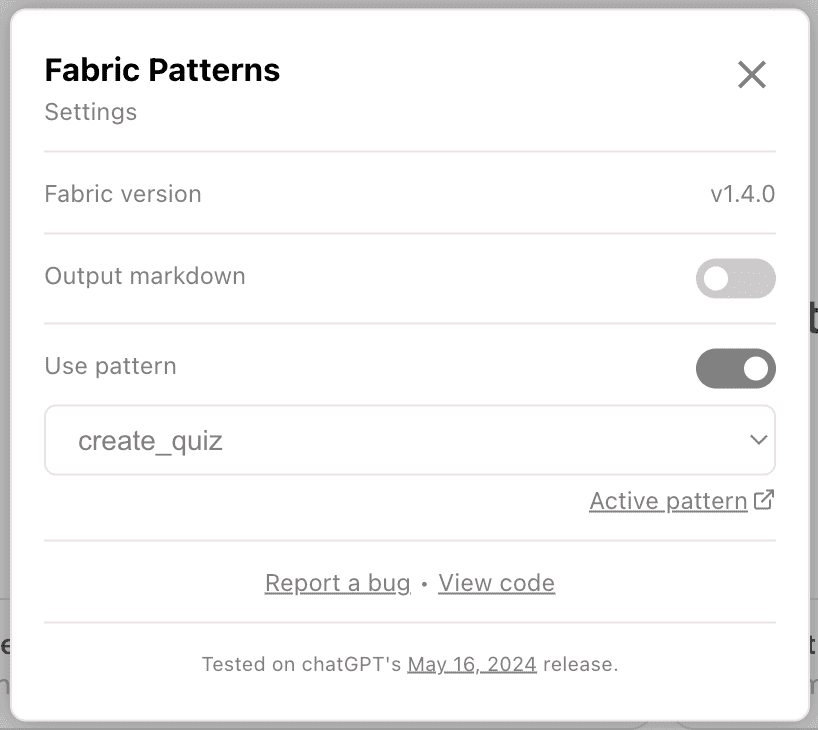 You can use any of Fabric’s patterns the same way - just pick the one you want from the extension menu, and it’ll handle the rest.